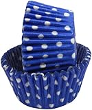 - 40 count cool cobalt blue with white polka dots non-stick, standard cupcake pan liners